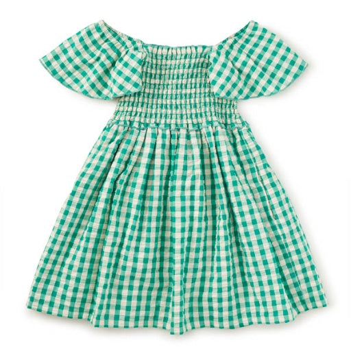 Green Gingham Flutter Dress
